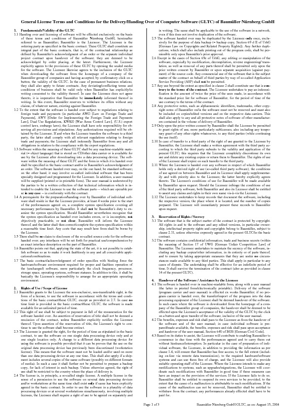 General License Terms and Conditions for the Delivery/Handing Over of Computer Software (GLTC) of Baumüller Nürnberg GmbH