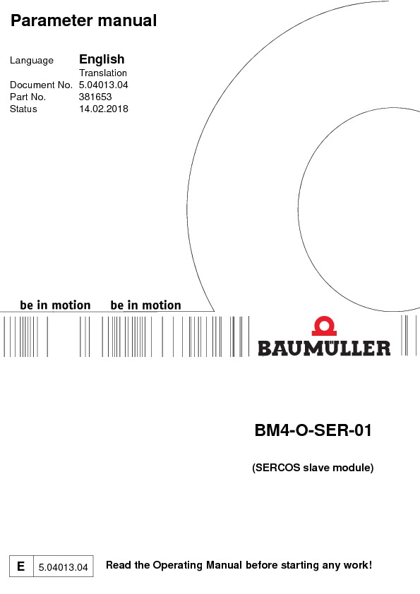 SERCOS slave module BM4-O-SER-01 Parameter manual