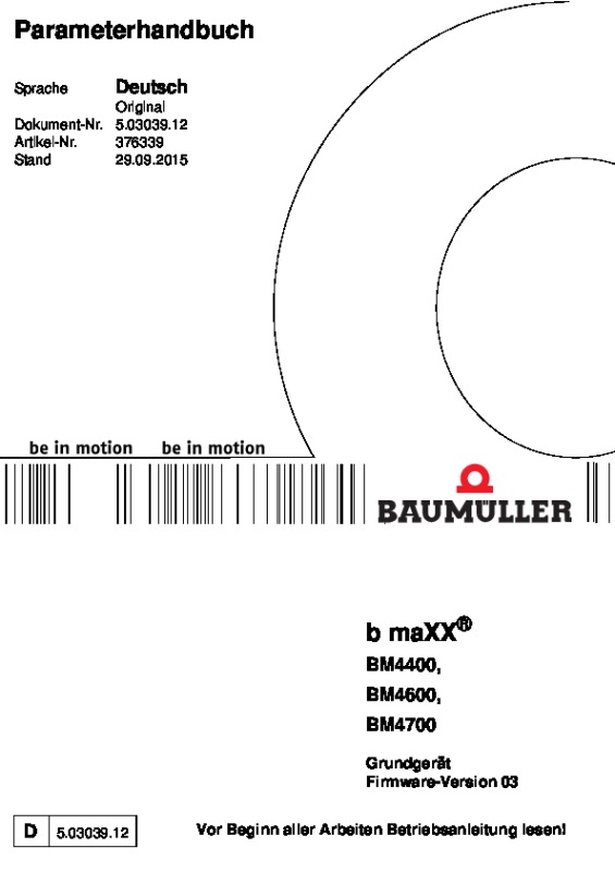 b maXX 4400 Grundeinheit Firmware 01 Parameterhandbuch