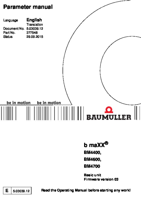b maXX 4400 basic unit firmware 01 Parameter manual